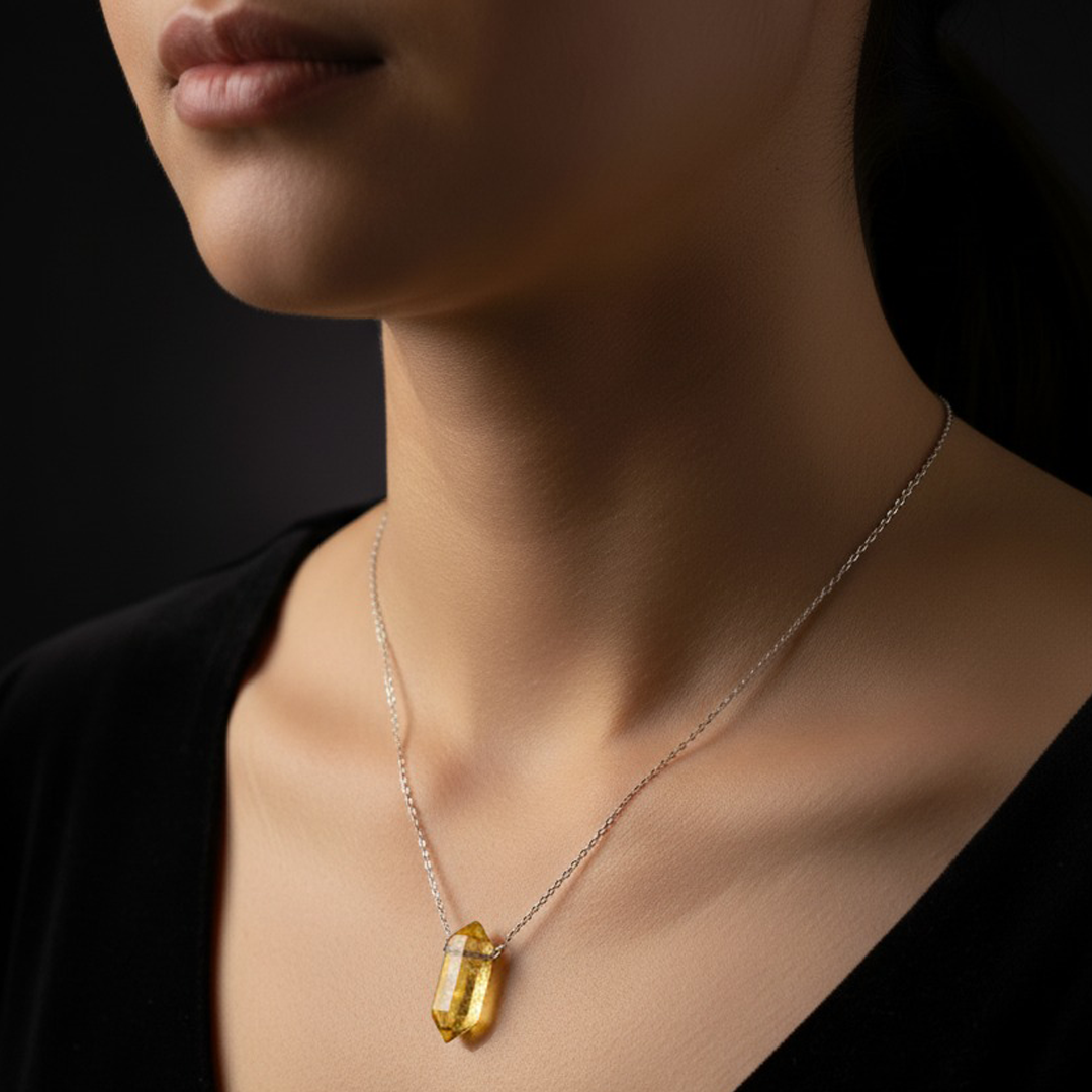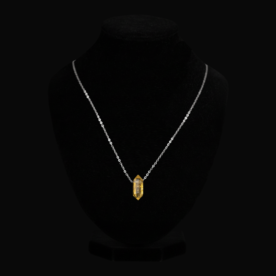 A slim silver-tone chain with a polished Citrine double-point bullet pendant.
